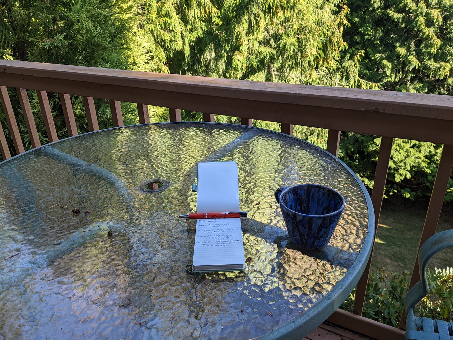 There are a few ideas, somewhere in there. Every now and then, I flip through my notebooks looking for those. Sometimes, I find them. They say things like “Orcas left…tree thing.” Or, “Jeff and the Padre” (which I think was a baseball reference? Maybe? Unless it was the title and concept for a lost Hardy Boys-style series novel?).